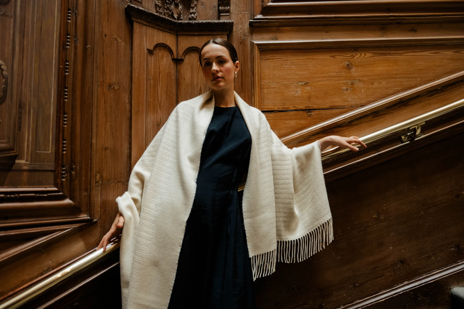 With a mission to preserve Scotland’s weaving heritage, Drove Weavers continues to produce cloth to the highest standard, keeping alive the skills, craftsmanship, and pride that have defined the Borders for generations. They are also specialists in executing Araminta’s highly technical weave structures, working with precision and care to bring her vision to life. Their expertise in handling our unique British alpaca and rose fibre blend ensures each piece carries both the softness and durability that define our collections.