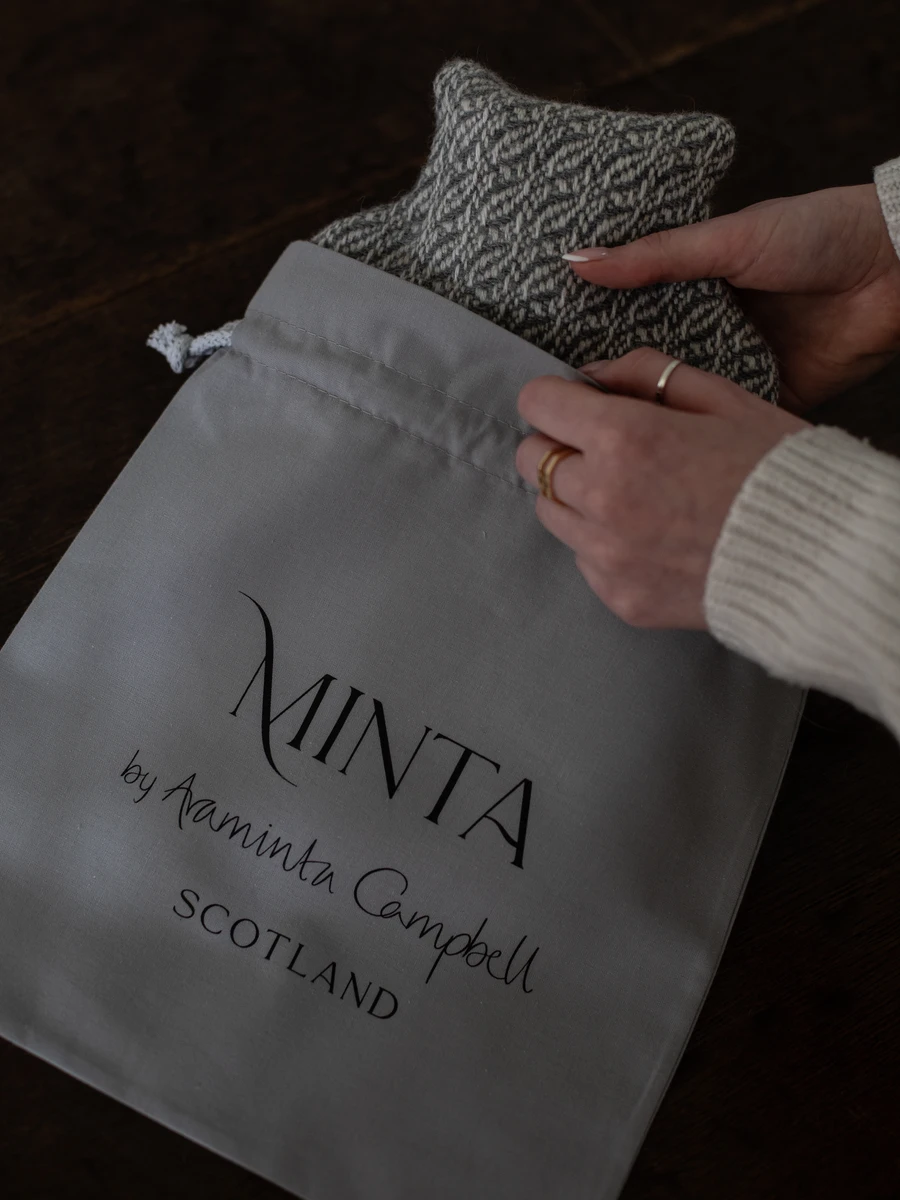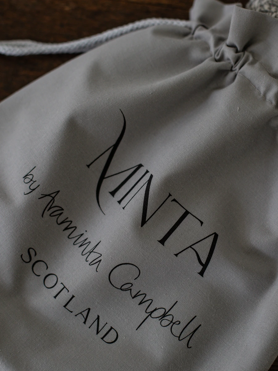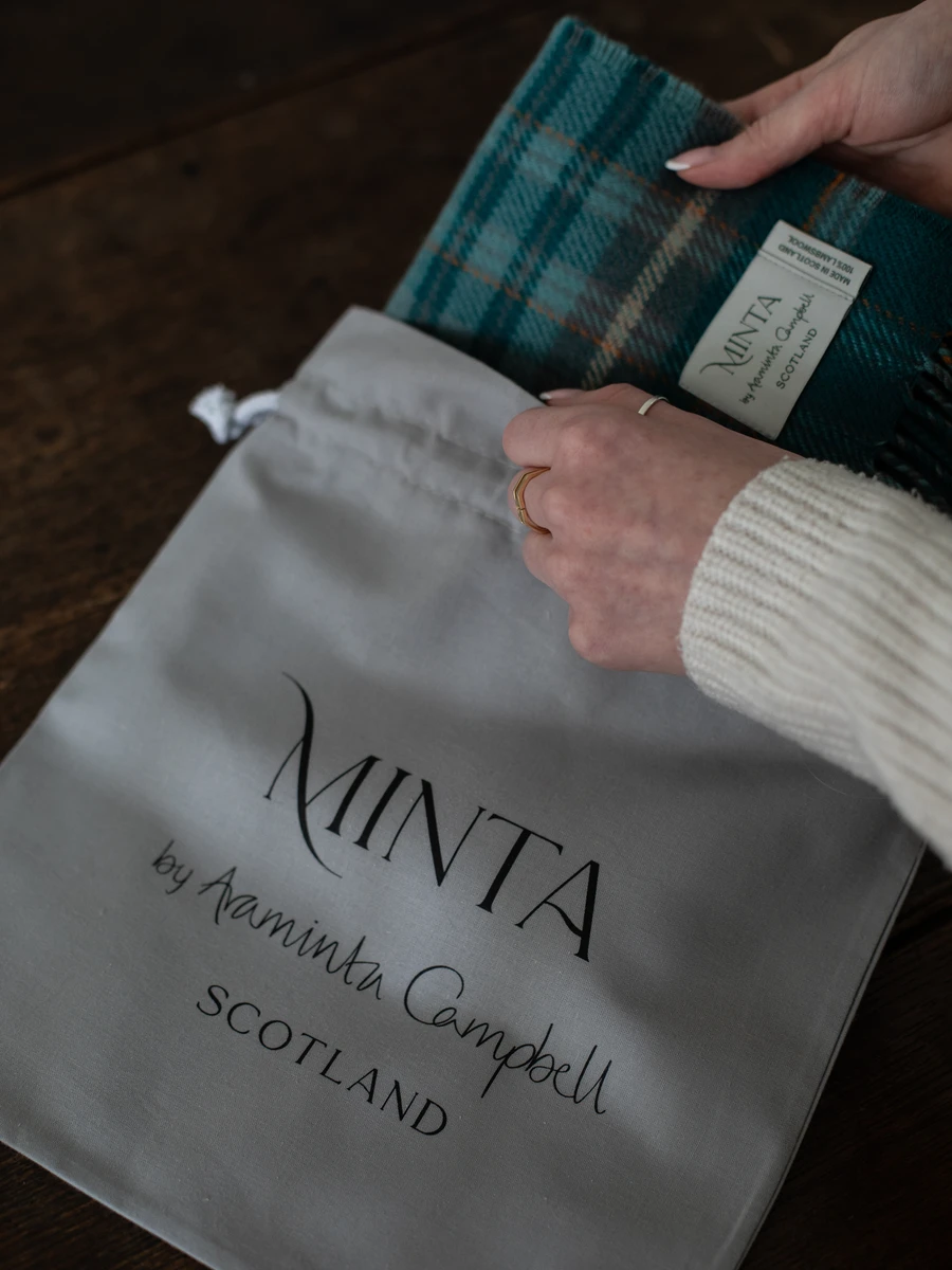 Make your purchase extra special with our Scottish gift wrapping service. Your piece will arrive beautifully presented in a branded kraft brown box, tied with a gorgeous green ribbon. Inside, your chosen piece is carefully packaged in its branded grey cloth bag, accompanied by our postcard story pack, a set of mini postcards sharing the inspiration behind the collection and designs.